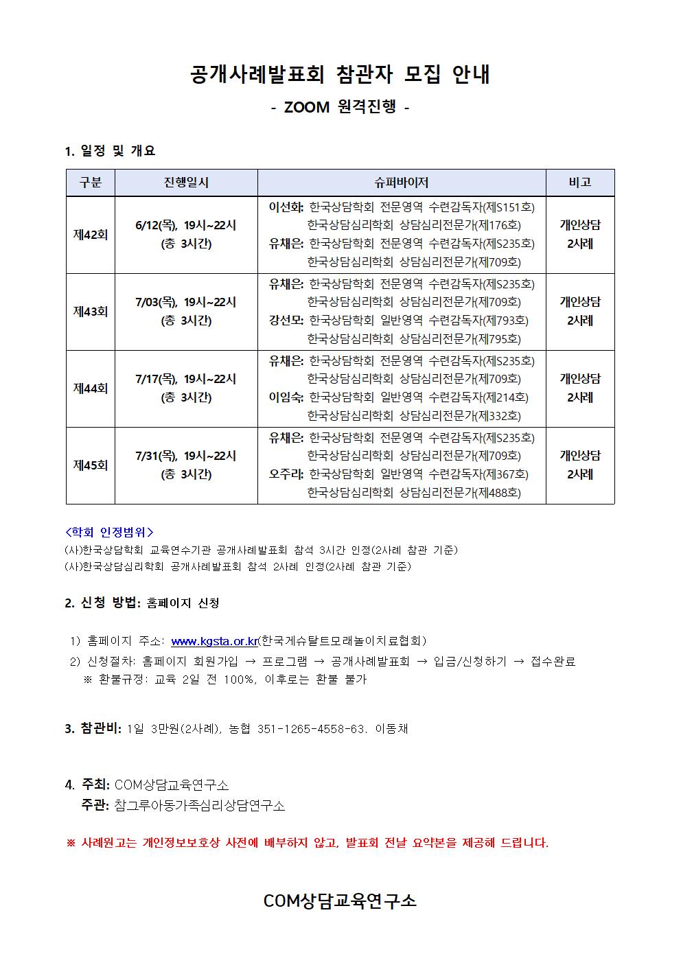 한국게슈탈트모래놀이치료협회 주요행사 안내입니다.