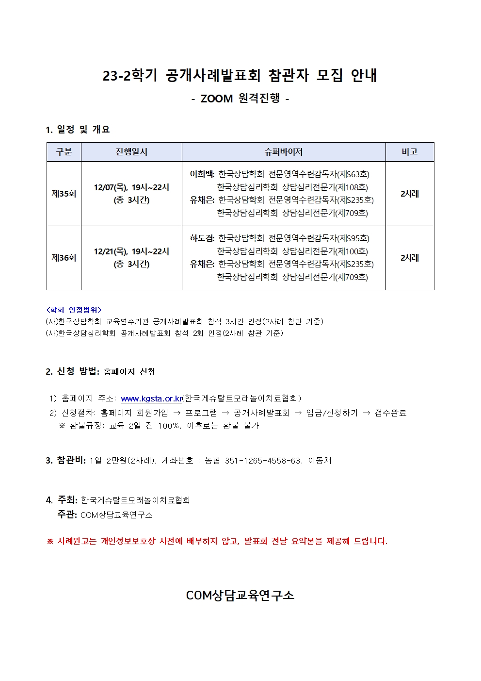 한국게슈탈트모래놀이치료협회 주요행사 안내입니다.